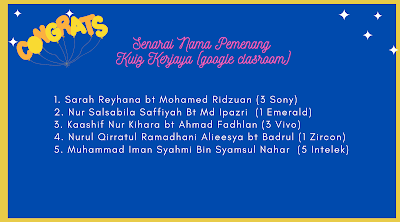 Tahniah diucapkan kepada semua pemenang pertandingan.Terima kasih kepada semua yang terlibat dan tidak lupa kepada ibu bapa yang memberi dorongan semangat kepada anak-anak dalam mengikuti aktiviti yang dijalankan oleh Unit B&K.